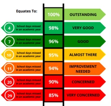 Persistent Absence is when your child’s attendance falls below 90%. We want to work together with our families to avoid children becoming ‘persistently absent’ (below 90%).